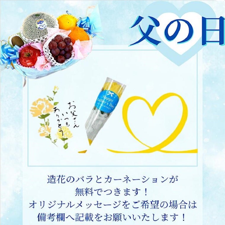 4. 期間限定!父の日果物ギフト 食の宝石箱 【父の日バスケットメロン入り】フルーツ盛り籠 父の日ギフト 造花の黄色いバラとメッセージカード付!