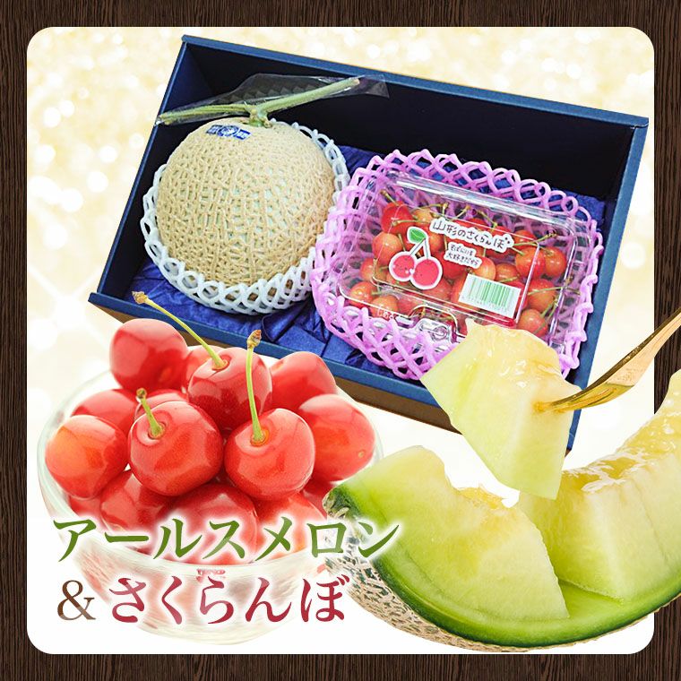 3. 季節限定!果物ギフト 国産アールスメロン1玉&国産さくらんぼ1パック 入り化粧箱 *今年はさくらんぼが不作の為出荷不可