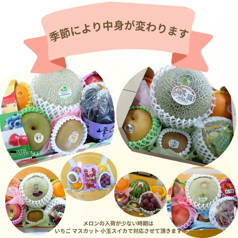 基本的にメロン入りの商品ですが、産地状況により、苺orシャインマスカットor小玉西瓜にて、代用させて頂きます。