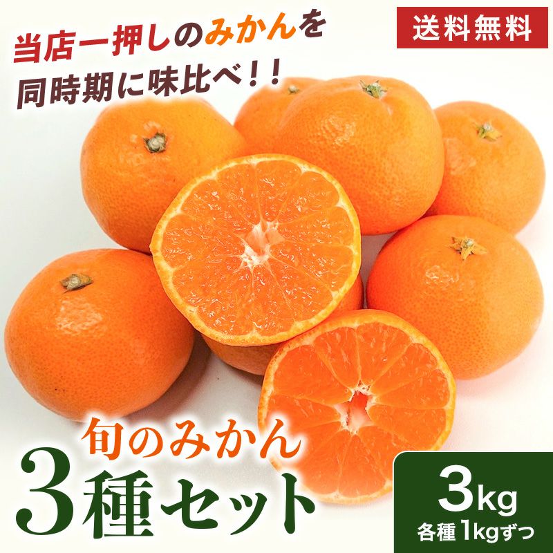 3. 全国厳選 みかん 3品3kg旬の詰め合わせ お任せ1kgずつ3袋=計3kg 食べ比べ フルーツセット 御歳暮 九州 静岡 愛媛 和歌山 等各地自慢の 詰め合わせ みかん 柑橘 果物 フルーツ 厳選 光センサー選果 温州みかん