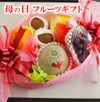 期間限定販売!!優しい風合いのラッピングが一押し!当店では人気のフルーツバスケットをより美しく仕上げました!母の日用に造花のカーネーションとメッセージカードをご用意しました!!