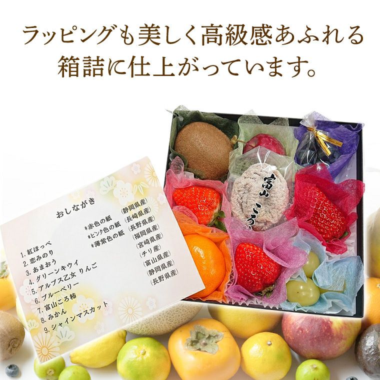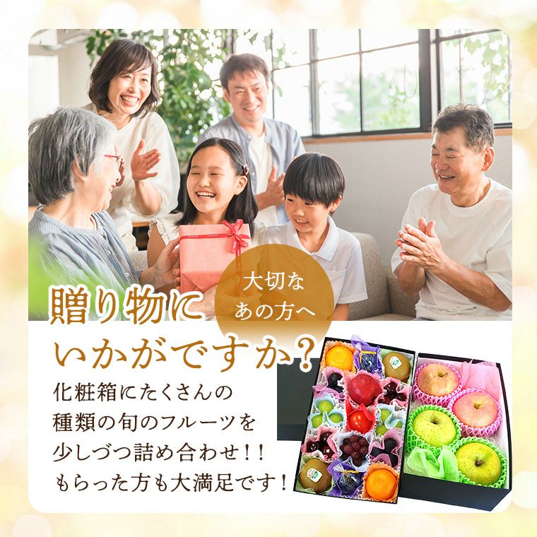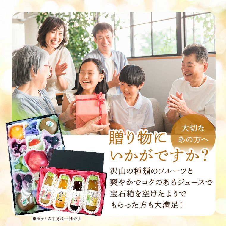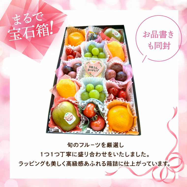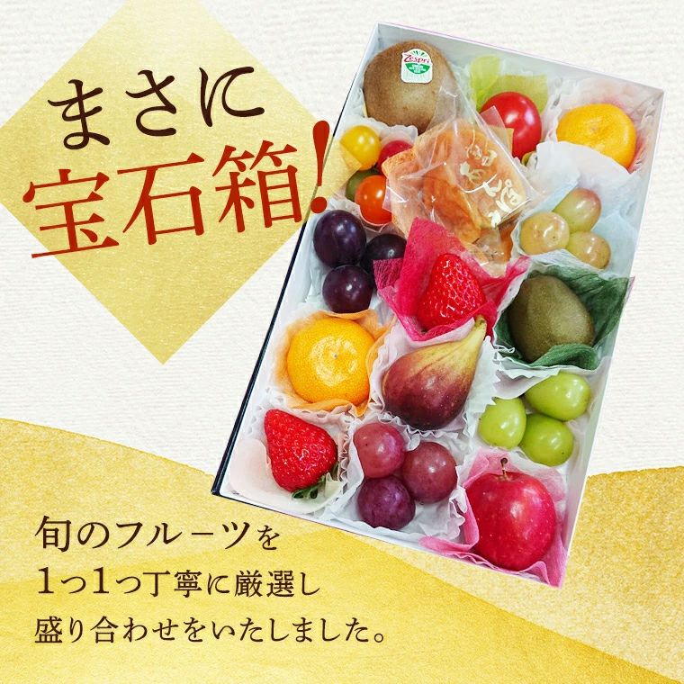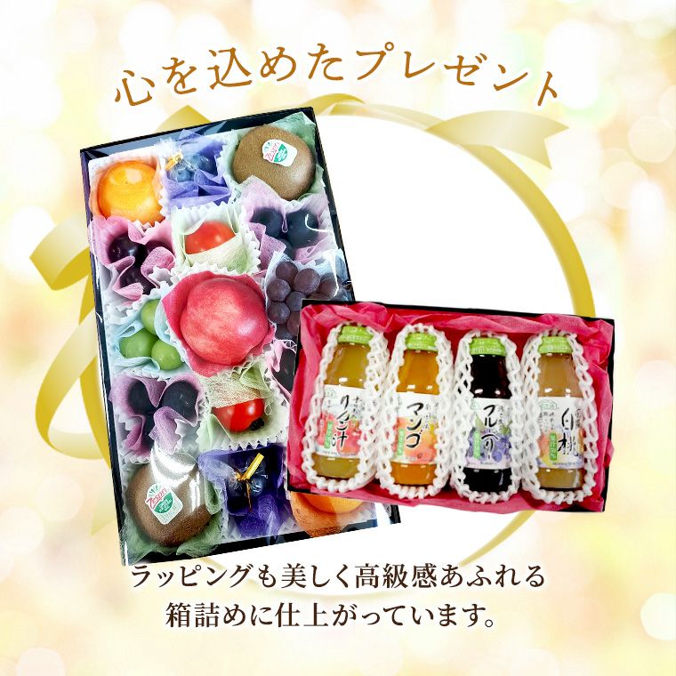 他の画像を見る 化粧箱に旬のフルーツを詰め合わせ!!色とりどりのフル-ツを一つ一つ丁寧に詰め合わせて、まるで宝石箱!可愛くて、誕生日やお祝いに最高のプレゼント!プロにお任せギフト! 果物ギフト 食の宝石箱 【フル-ツジュエリーBOX15個入とフルーツジュース4本入またはフルーツゼリー6個入の2段重ねセット化粧箱入り】フルーツセット ※1段目はフルーツ、2段目はジュースまたはゼリーをお選びいただけます※ 送料込み(一部除く) 10%オフ対象商品 クール便でお届け 当店特別価格 ¥ 7,880 税込 詳細を見る お気に入りに登録する