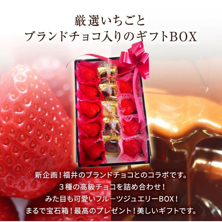 他の画像を見る 福井のブランドチョコ 横井チョコレート とのコラボ!季節厳選のフル-ツを一つ一つ丁寧に詰め合わせました!まるで宝石箱!可愛くて、大切な人への贈り物に!最高のプレゼント! 果物ギフト 食の宝石箱 【フルーツジュエリーBOX クーベルチュールチョコレート2種10枚&苺 又は 季節厳選の果物10個入りセット】フル-ツジュエリーBOX15個入セット化粧箱入り 送料込み(一部除く) 10%オフ対象商品 クール便でお届け 当店特別価格 ¥ 6,480 税込 販売期間 2026/01/10 0:00 〜 2026/03/31 23:59 詳細を見る お気に入りに登録する