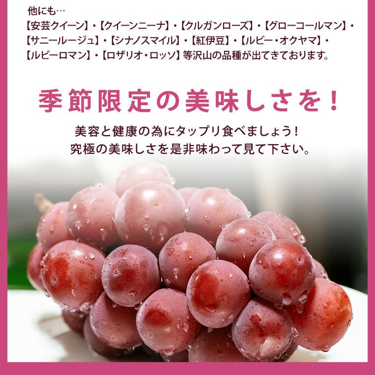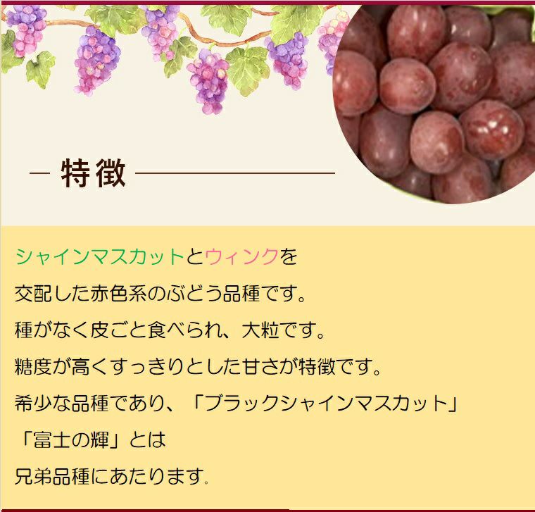 他の画像を見る 数量限定!!希少で話題沸騰の赤いぶどうです!種無しで皮ごと食べられる高糖度の大粒ぶどう!!すっきりとした甘さが特徴! 長野県産 美和姫 1房化粧箱 シャインマスカット×ウインクの交配種 赤色系葡萄 送料込み(一部除く) クール便でお届け 当店特別価格 ¥ 4,500 税込 販売を終了しました。 在庫切れ 詳細を見る お気に入りに登録する