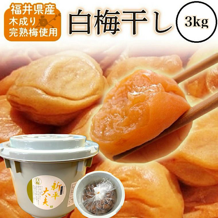 他の画像を見る 着色料なし!福井梅 新平太夫梅使用 昔ながらの酸っぱい梅干し 福井県産【木成完熟梅 白梅干し】約3Kgプラスチック樽入り 塩分17-20% *容器は変動あり* 送料込み(一部除く) 10%オフ対象商品 当店特別価格 ¥ 8,350 税込 詳細を見る お気に入りに登録する