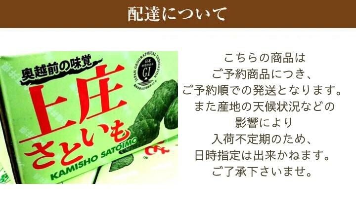 他の画像を見る 越前大野の清らかな水と澄んだ自然に囲まれて育った里芋です 福井県特産 上庄里芋 約1.5K入り サイズ指定なし 10月下旬頃から順次発送予定 送料込み(一部除く) 当店特別価格 ¥ 2,930 税込 販売を終了しました。 詳細を見る お気に入りに登録する