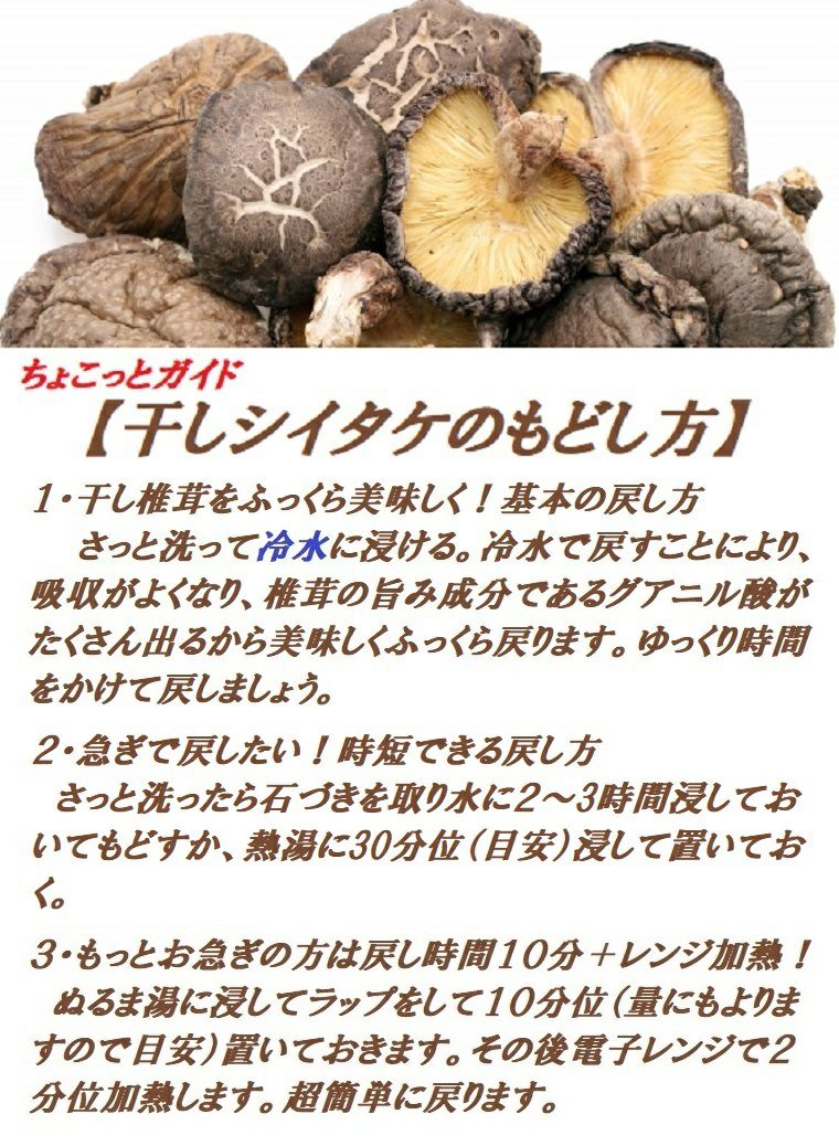 他の画像を見る お正月の御煮しめには欠かせない味わい 肉厚で薫り高い!森の香りと豊かな味わい!煮物 お吸い物 だし 炊き込みご飯 福井県産 干し椎茸 約65g入り 越前生まれ原木育ち 送料込み(一部除く) 当店特別価格 ¥ 1,780 税込 詳細を見る お気に入りに登録する