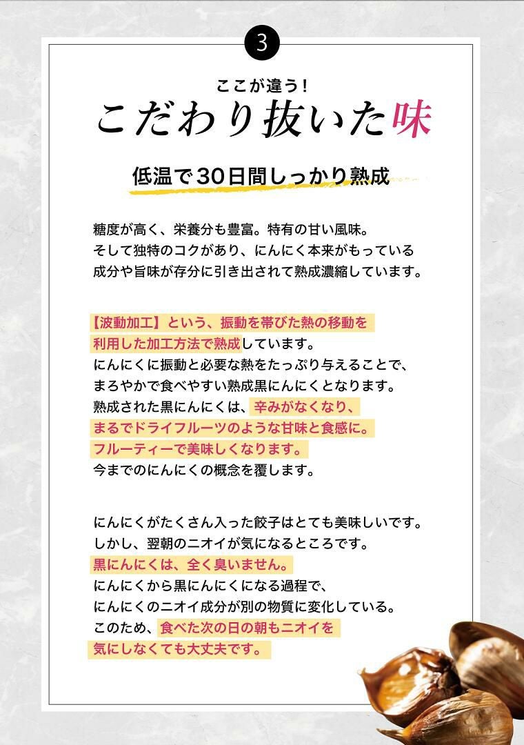 他の画像を見る 波動熟成加工!高級フルーティーな味わい!粒が大きくて食べ応えあり!健康・体力増進に! 黒ニンニク【玄】約100g×4パック 青森県産にんにく使用 送料込み(一部除く) 当店特別価格 ¥ 3,880 税込 詳細を見る お気に入りに登録する