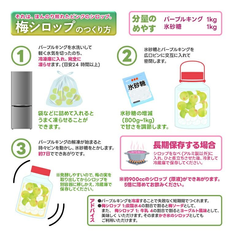 他の画像を見る ロゼワインの様な仕上がり!!美しい色合い!自家製の梅酒・梅ジュース・梅シロップづくりに! 数量限定!大粒冷凍梅 【パープルキング】秀品約1Kg 和歌山紀州 希少梅 冷凍梅Lサイズ以上 1か所5袋までは1つの送料で送れます*今年は大盛況のうちに終了いたしました* 送料込み(一部除く) クール便でお届け 当店特別価格 ¥ 3,870 税込 在庫切れ 詳細を見る お気に入りに登録する