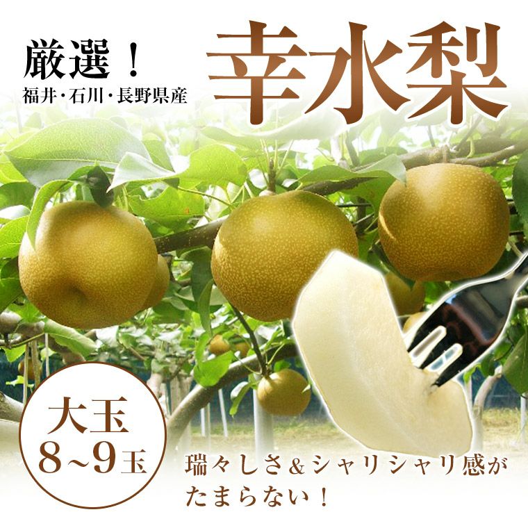 他の画像を見る 濃厚な甘みとみずみずしさがたまらない! 高糖度!福井・石川・長野県産 【和梨】秀品大8玉化粧箱 ご予約順に発送 送料込み(一部除く) 10%オフ対象商品 クール便でお届け 当店特別価格 ¥ 5,350 税込 販売を終了しました。 詳細を見る お気に入りに登録する