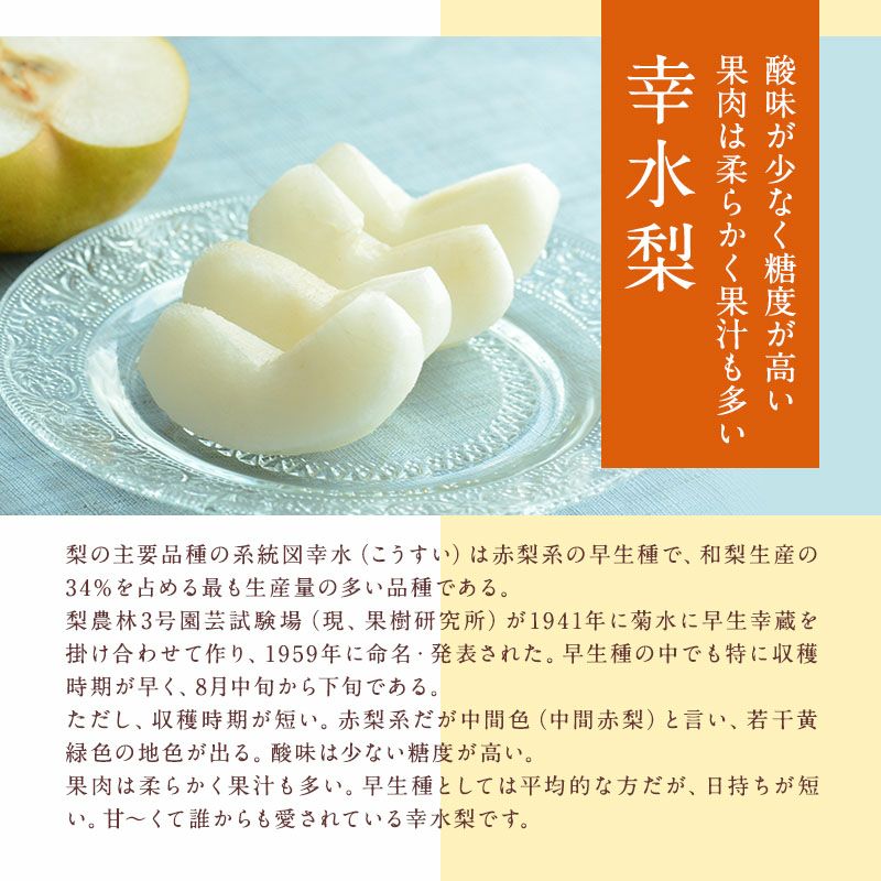 他の画像を見る 【瑞々しさ】&【シャリシャリ感】がたまらない! 福井・石川・長野県産 【幸水梨】秀大玉8玉化粧箱 8月中旬お盆過ぎから発送予定 送料込み(一部除く) 10%オフ対象商品 クール便でお届け 当店特別価格 ¥ 5,350 税込 販売を終了しました。 詳細を見る お気に入りに登録する