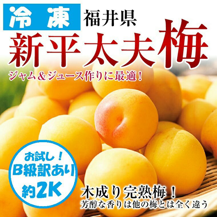 他の画像を見る 自家製!いつでも梅ジャム・梅ジュースをジップロックで手軽に手作り! 【冷凍・福井県 新平太夫梅 完熟梅】約2K B級品袋入り ちょっと訳・傷あり 無選果 送料込み(一部除く) クール便でお届け 当店特別価格 ¥ 4,000 税込 在庫切れ 詳細を見る お気に入りに登録する