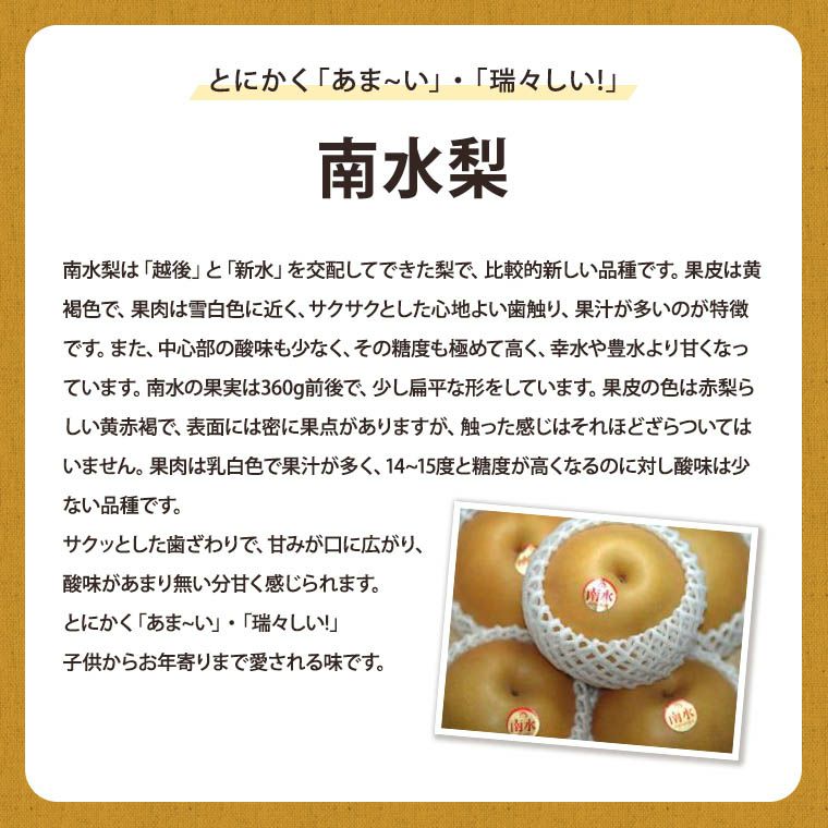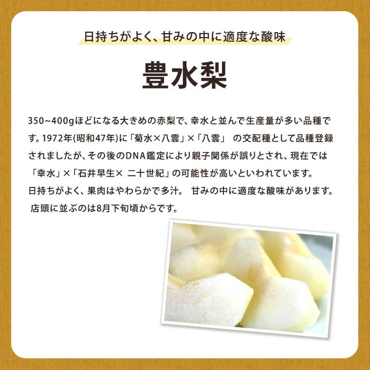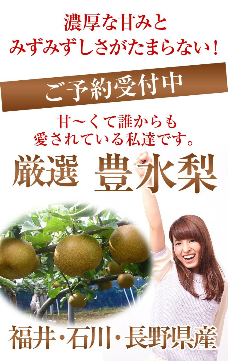 他の画像を見る 濃厚な甘みとみずみずしさがたまらない! 梨 和梨 福井・石川・長野県産 【豊水梨】約5K箱 9月初旬から順次発送予定 送料込み(一部除く) 10%オフ対象商品 クール便でお届け 当店特別価格 ¥ 6,180 税込 販売を終了しました。 詳細を見る お気に入りに登録する