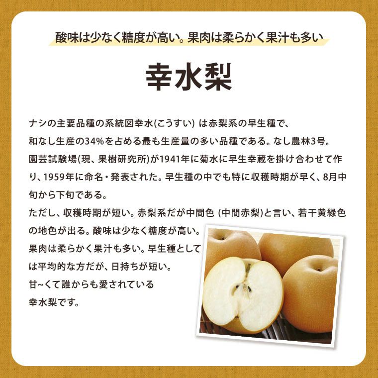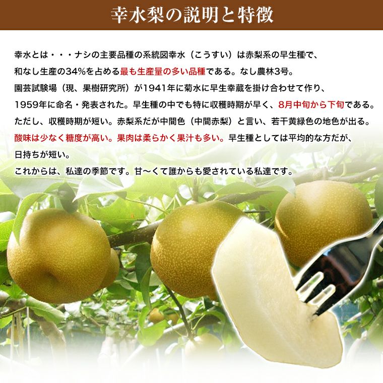 他の画像を見る 【瑞々しさ】&【シャリシャリ感】がたまらない! 梨 和梨 福井・石川・長野県産 【幸水梨】約5K箱 8月中旬以降、お盆過ぎから発送予定 送料込み(一部除く) 10%オフ対象商品 クール便でお届け 当店特別価格 ¥ 6,380 税込 販売を終了しました。 詳細を見る お気に入りに登録する