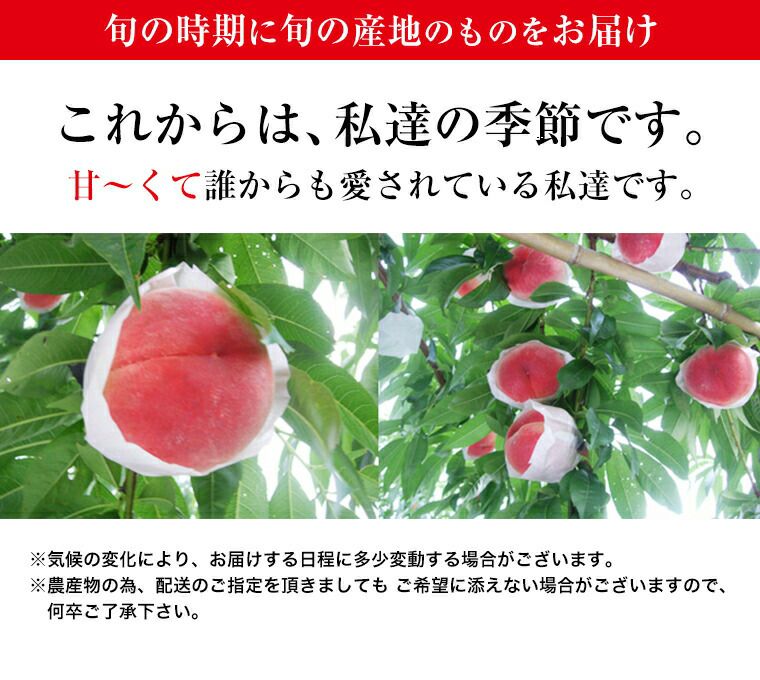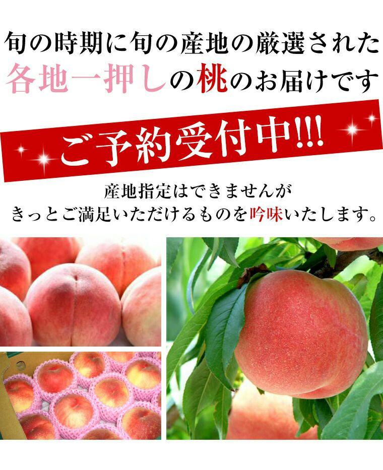 他の画像を見る 山梨・長野・山形・和歌山県産桃 白鳳・白桃・川中島・あかつき・一宮等々旬の時期に旬の産地で 大糖領等各地厳選もも 秀大玉8玉化粧箱 送料込み(一部除く) クール便でお届け 当店特別価格 ¥ 7,470 税込 販売を終了しました。 詳細を見る お気に入りに登録する